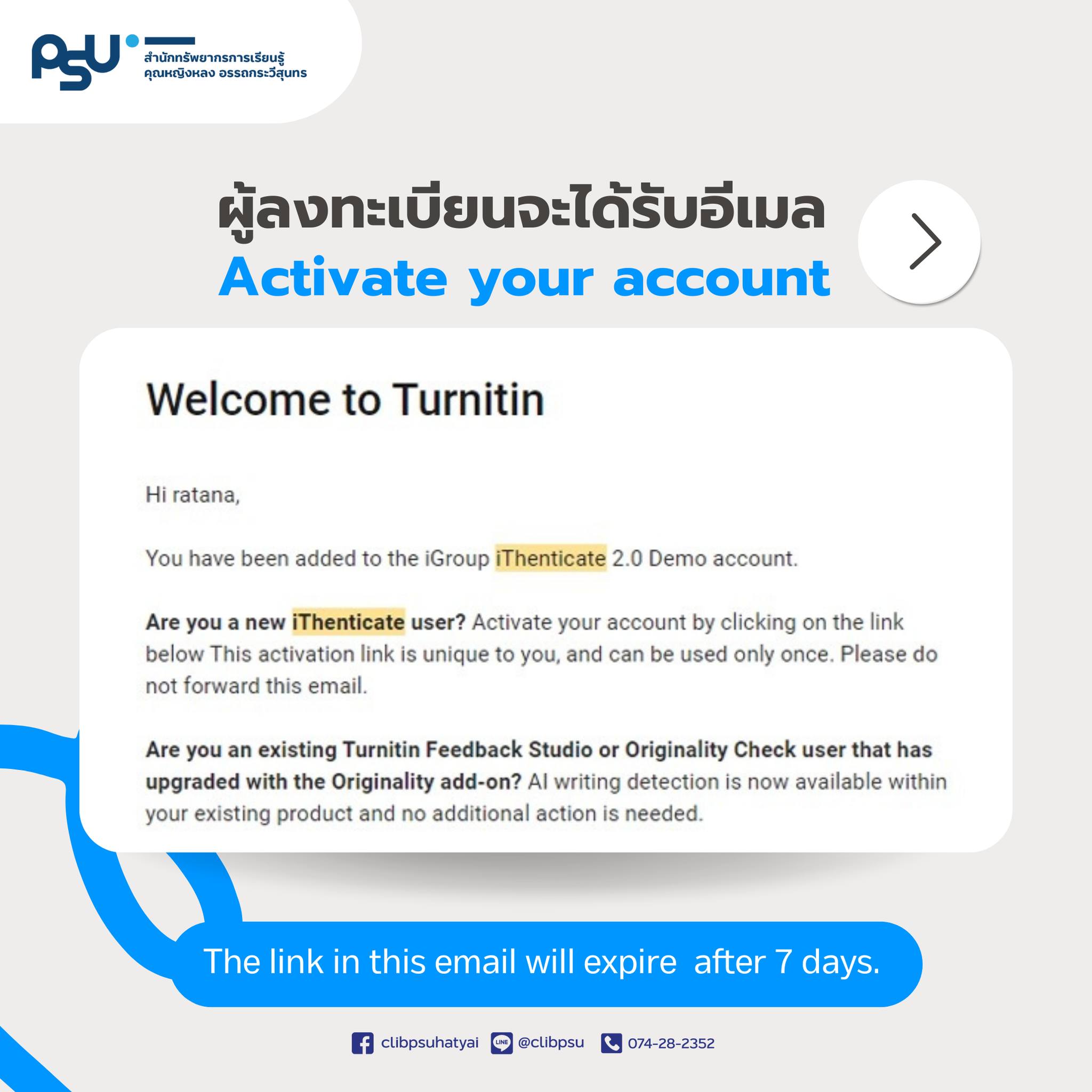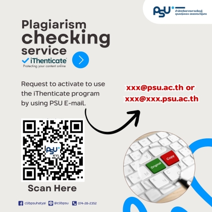 คู่มือการใช้งานโปรแกรม iThenticate ด้วย E-mail PSU : https://link.psu.th/ye1Y1